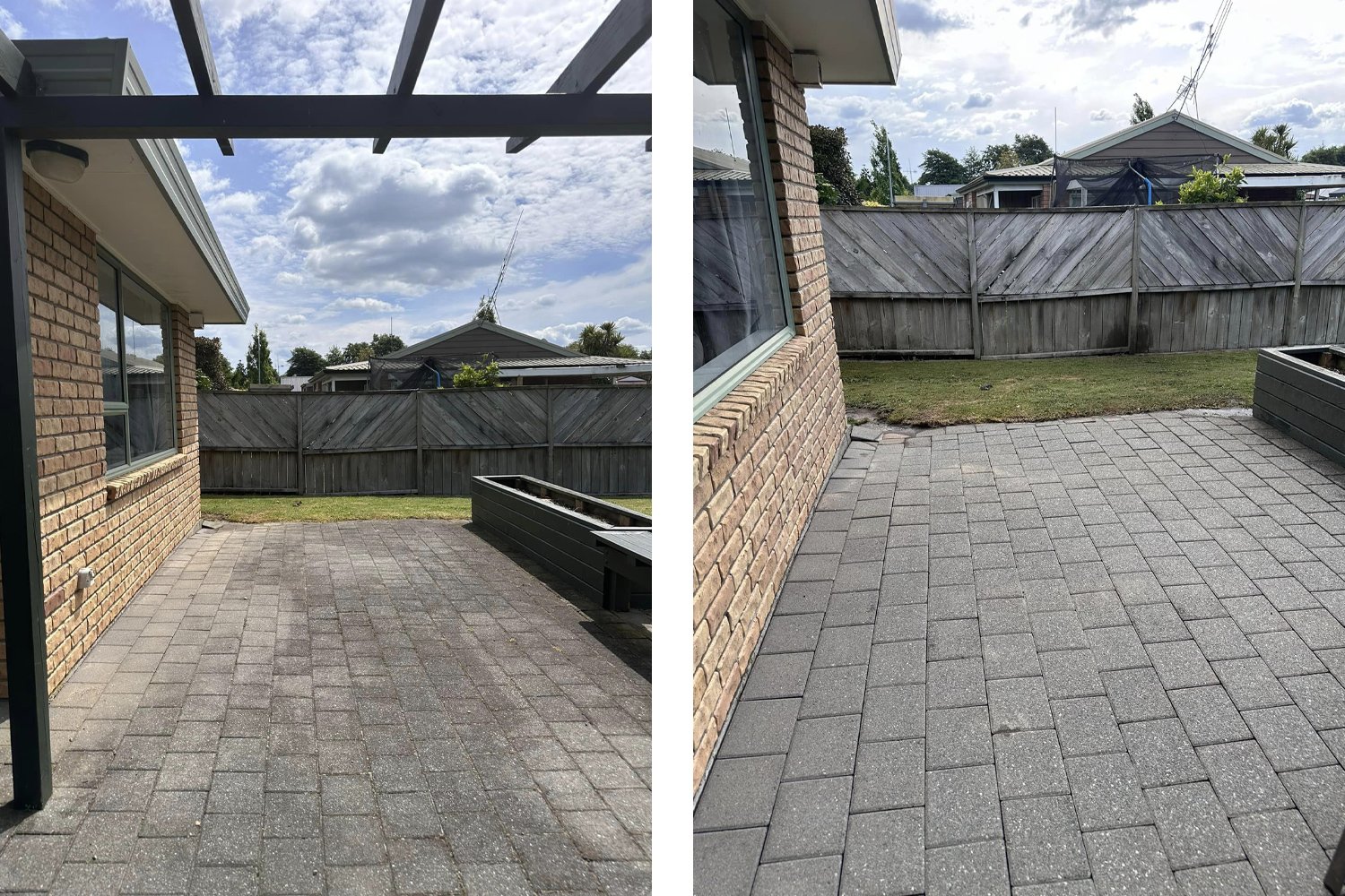 Cobblestone or paved driveways, on the other hand, are prone to accumulating dirt and debris between the stones, leading to a lacklustre appearance and potential for weed growth. Our cleaning process employs eco-friendly solutions designed to effectively remove embedded dirt and grime. Unlike traditional water blasting methods, which may not fully eliminate dirt, our gentle yet powerful chemicals penetrate deep into the surface, ensuring a thorough clean. We then re-sand the cobblestones, and can apply treatments to inhibit weed growth. This not only revitalises the appearance of your driveway but also ensures its longevity and prevents future maintenance issues.